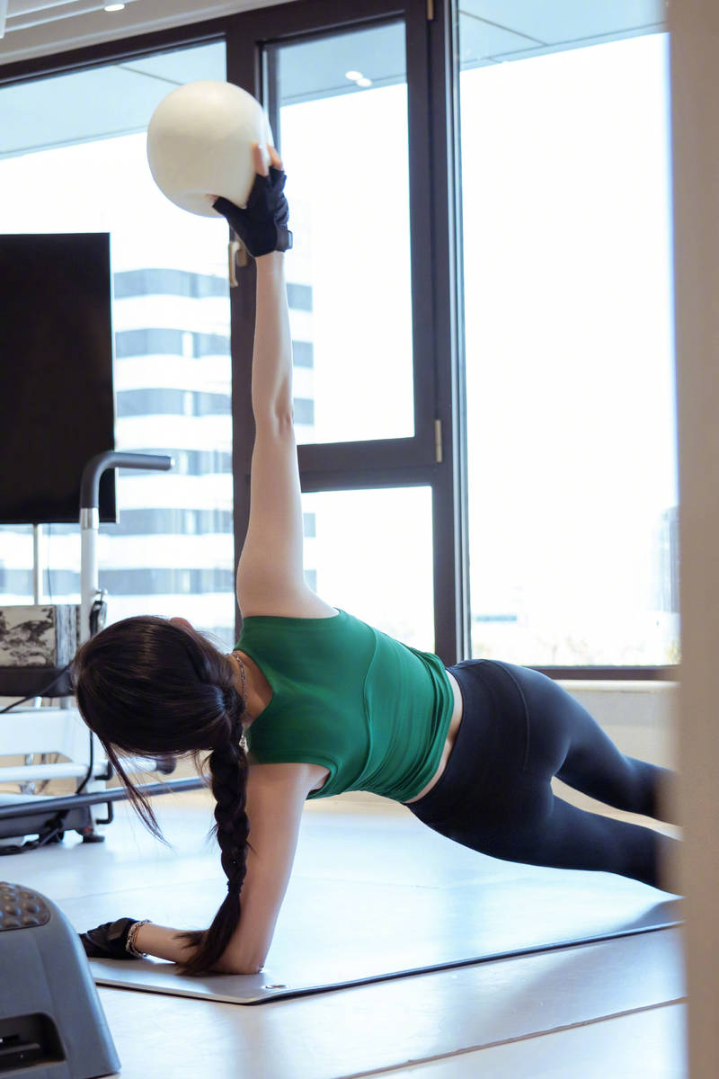 22日,杨幂最新的一组健身照曝光,她素颜出镜,穿着绿色紧身背心大方秀好身材,扎着麻花辫,依旧保持少女感!