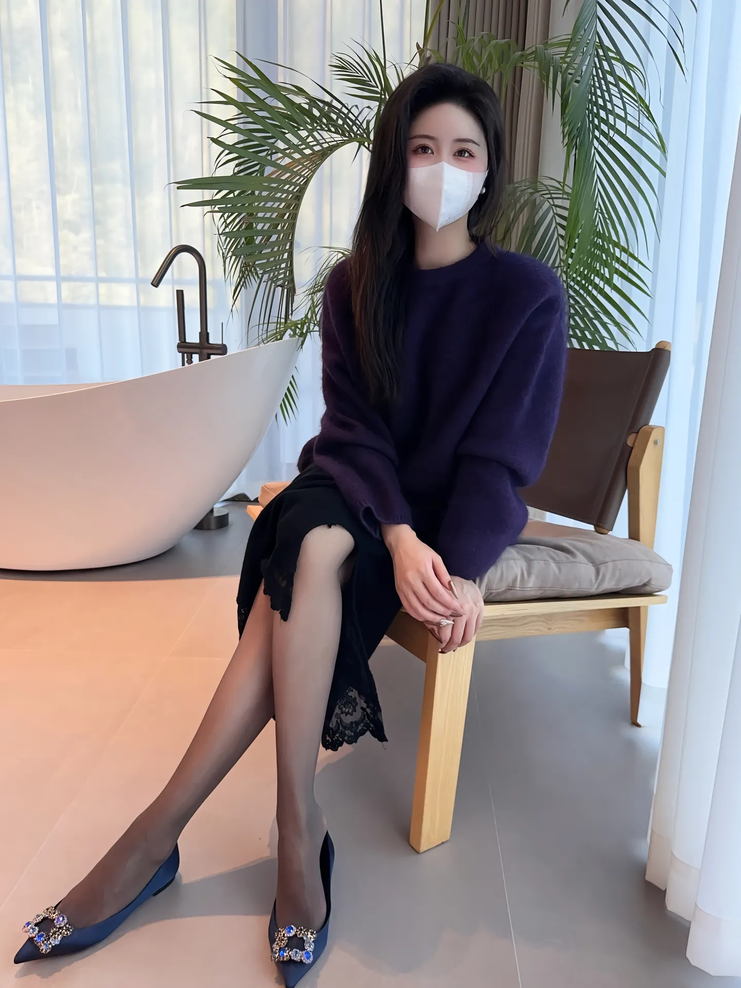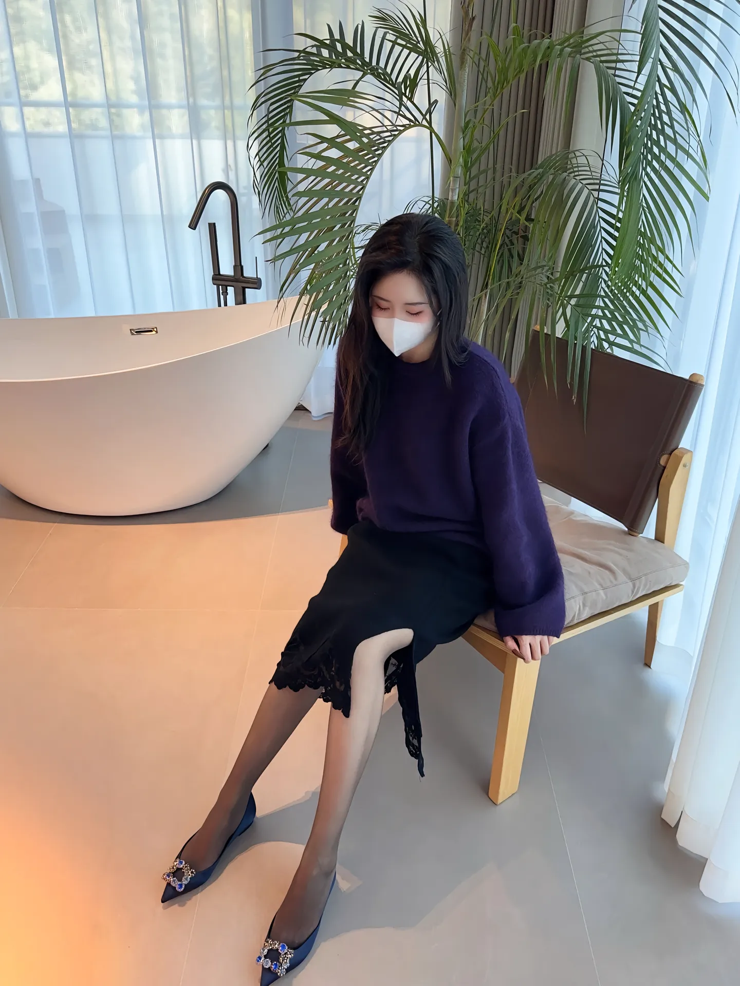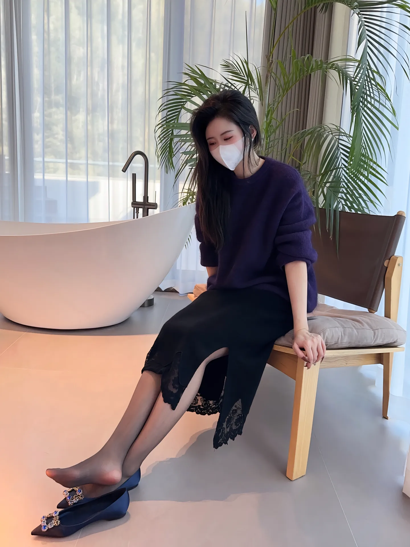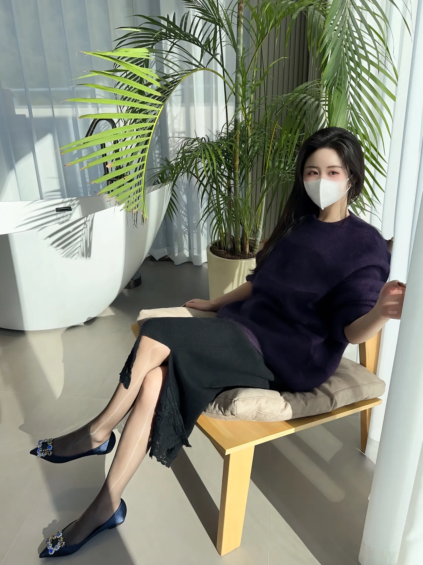 今天是紫色的衣服穿搭加黑丝