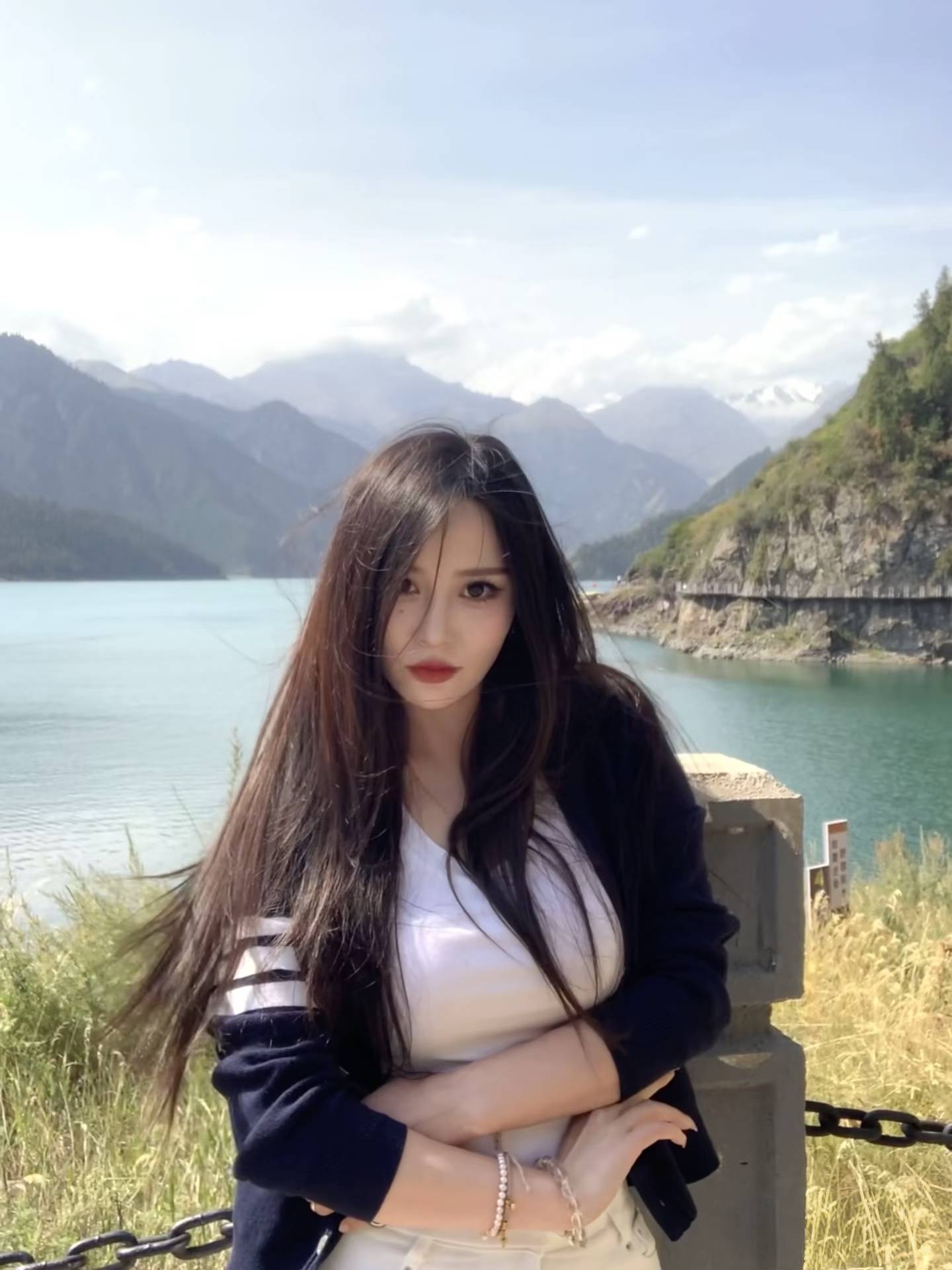 景区里偶遇漂亮气质的美女!