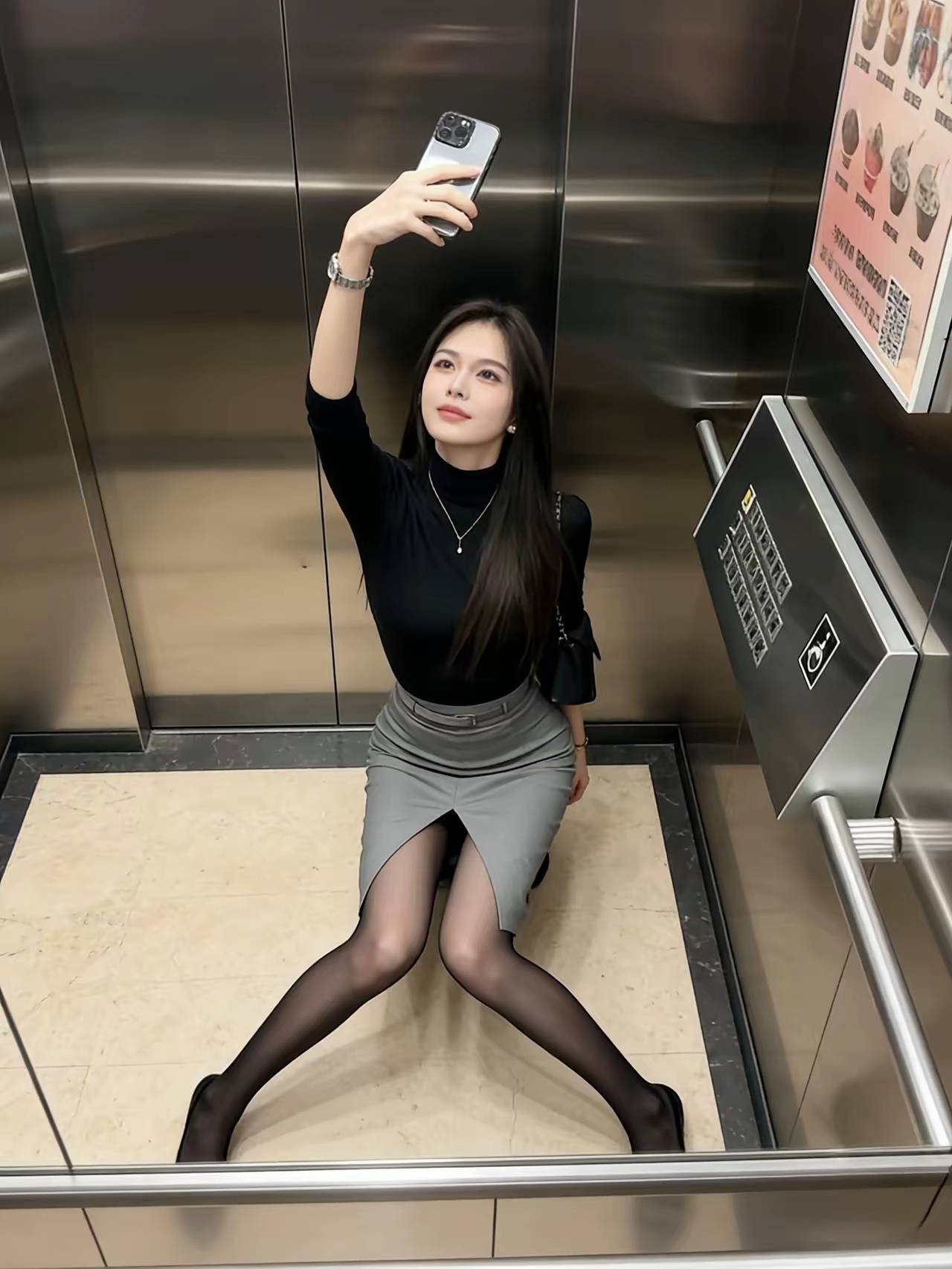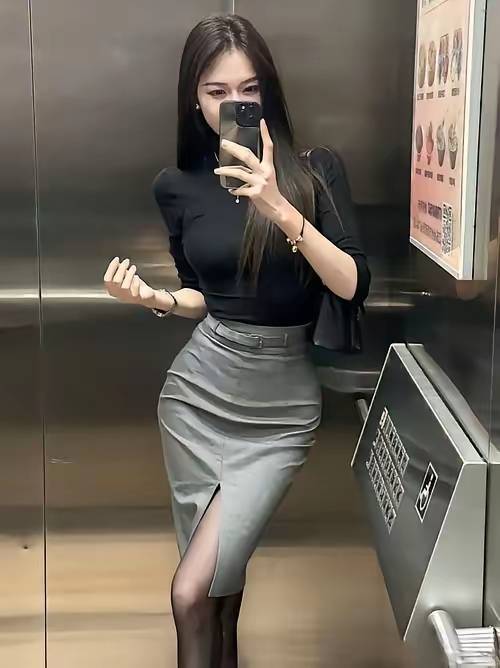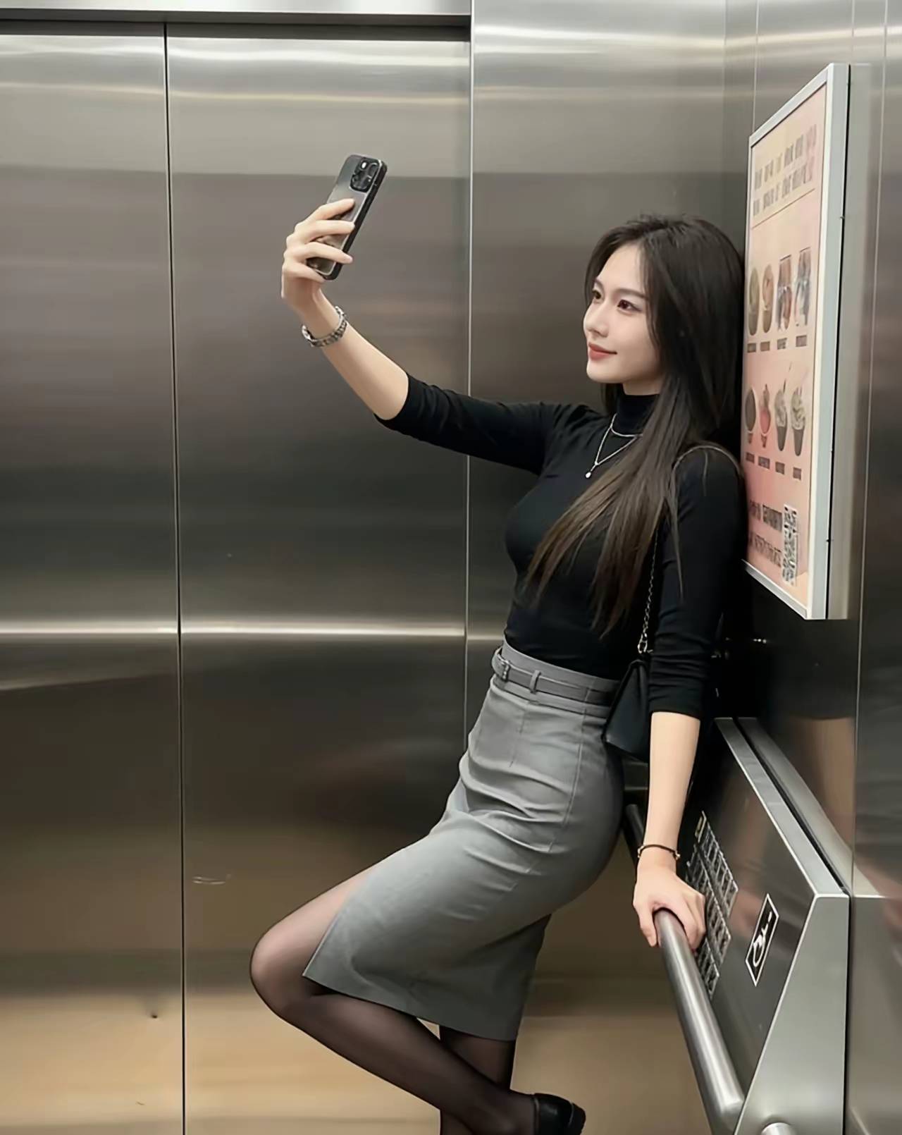 电梯中高挑气质的职场丽人!