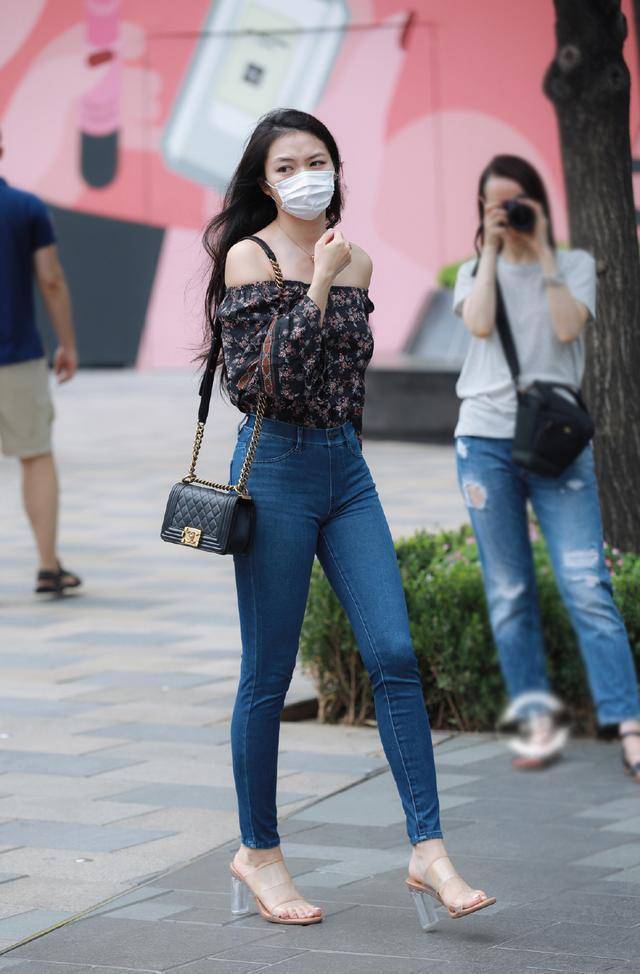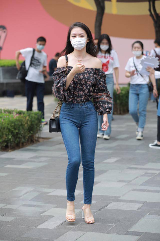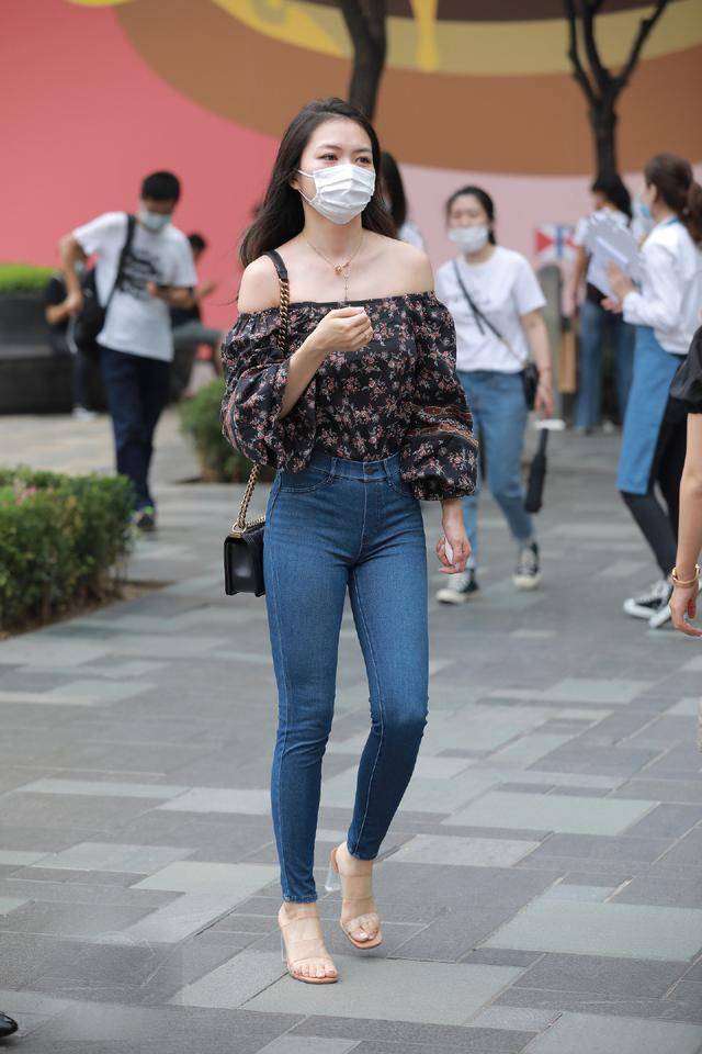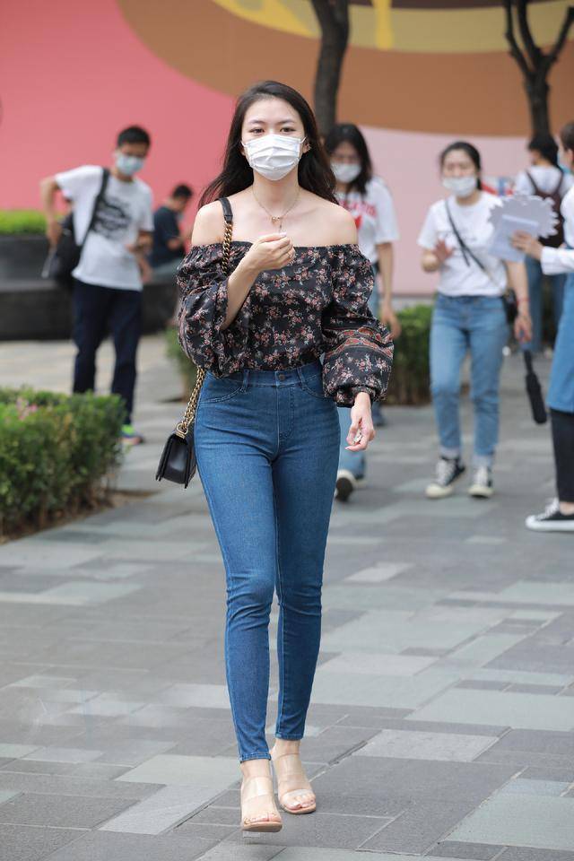 就像这位时尚小姐姐的搭配,黑色底粉色碎花的一字肩雪纺衫,搭配深蓝色修身牛仔裤,简洁中透着精致,气质格外迷人。一字肩设计本身就自带优雅与通透感,微露半肩与锁骨,让肩颈线条更显优美,瞬间提升整体气质。黑色底色沉稳大气,粉色碎花点缀其间,打破了黑色的沉闷,增添了几分甜美灵动,还能提亮肤色,让气色更显红润。雪纺面料轻盈透气,袖口的灯笼袖设计,既增加了造型感,又能巧妙修饰手臂线条,洋气又清新。