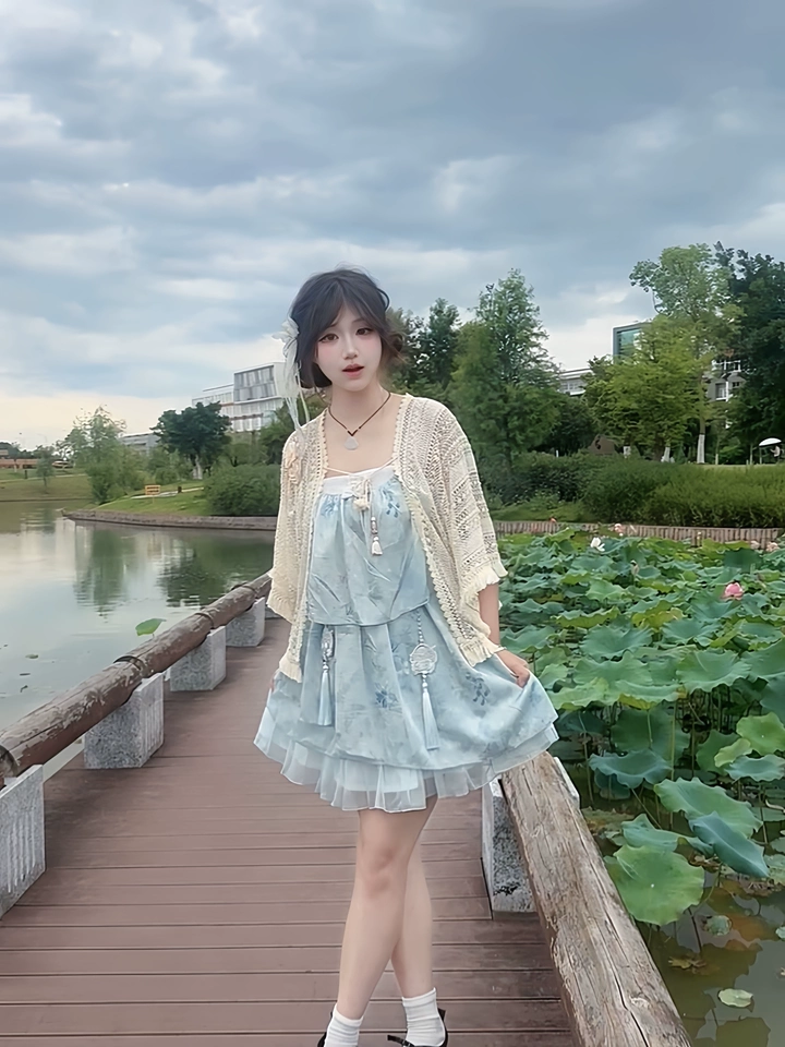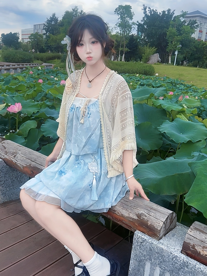 小裙子摸着软软的,颜色好看 整体上身比较清爽 夏天穿很合适! 然后吊带裙肩带绳要自己系可以调节长短 然后是拍了当天就寄的 到货也快