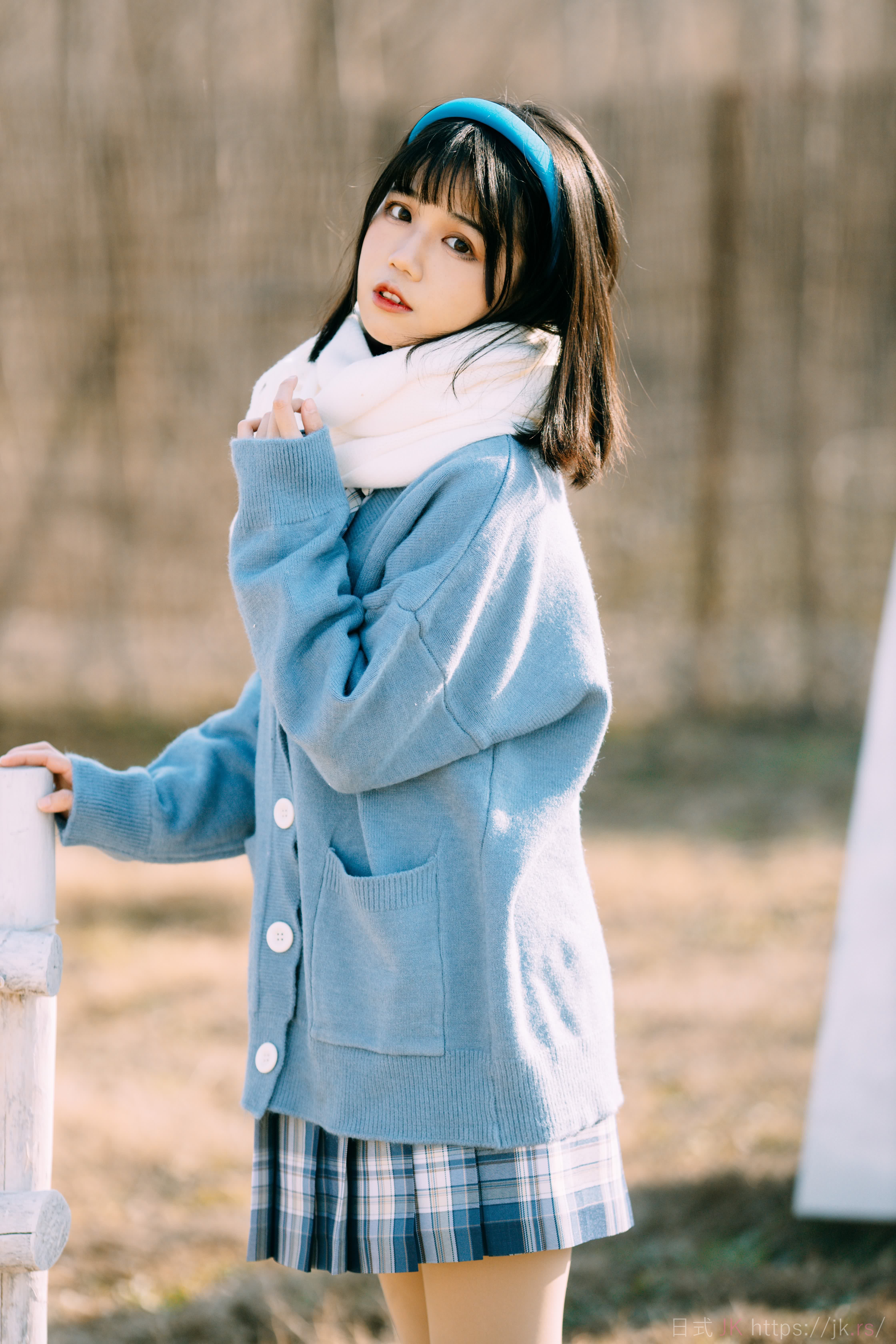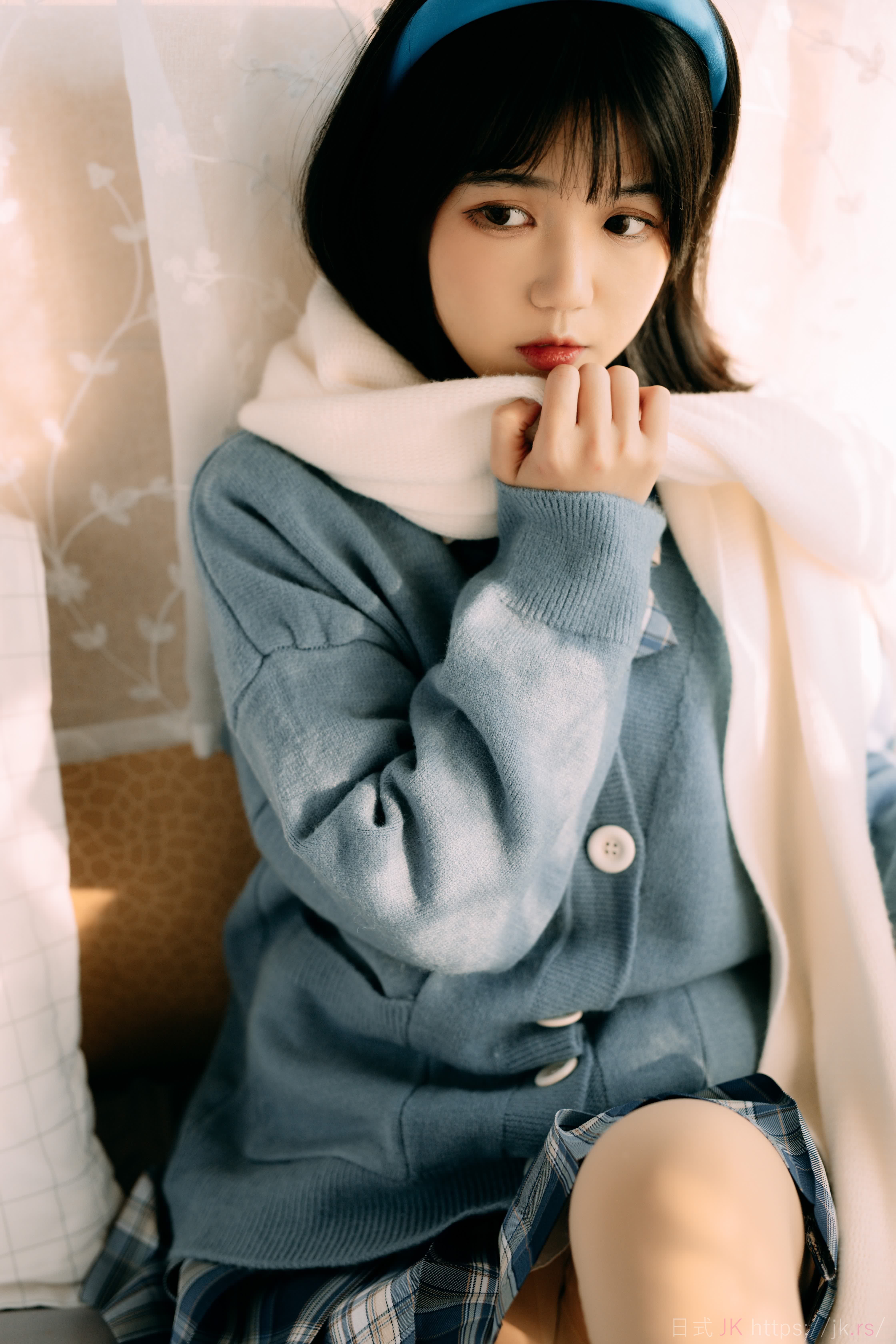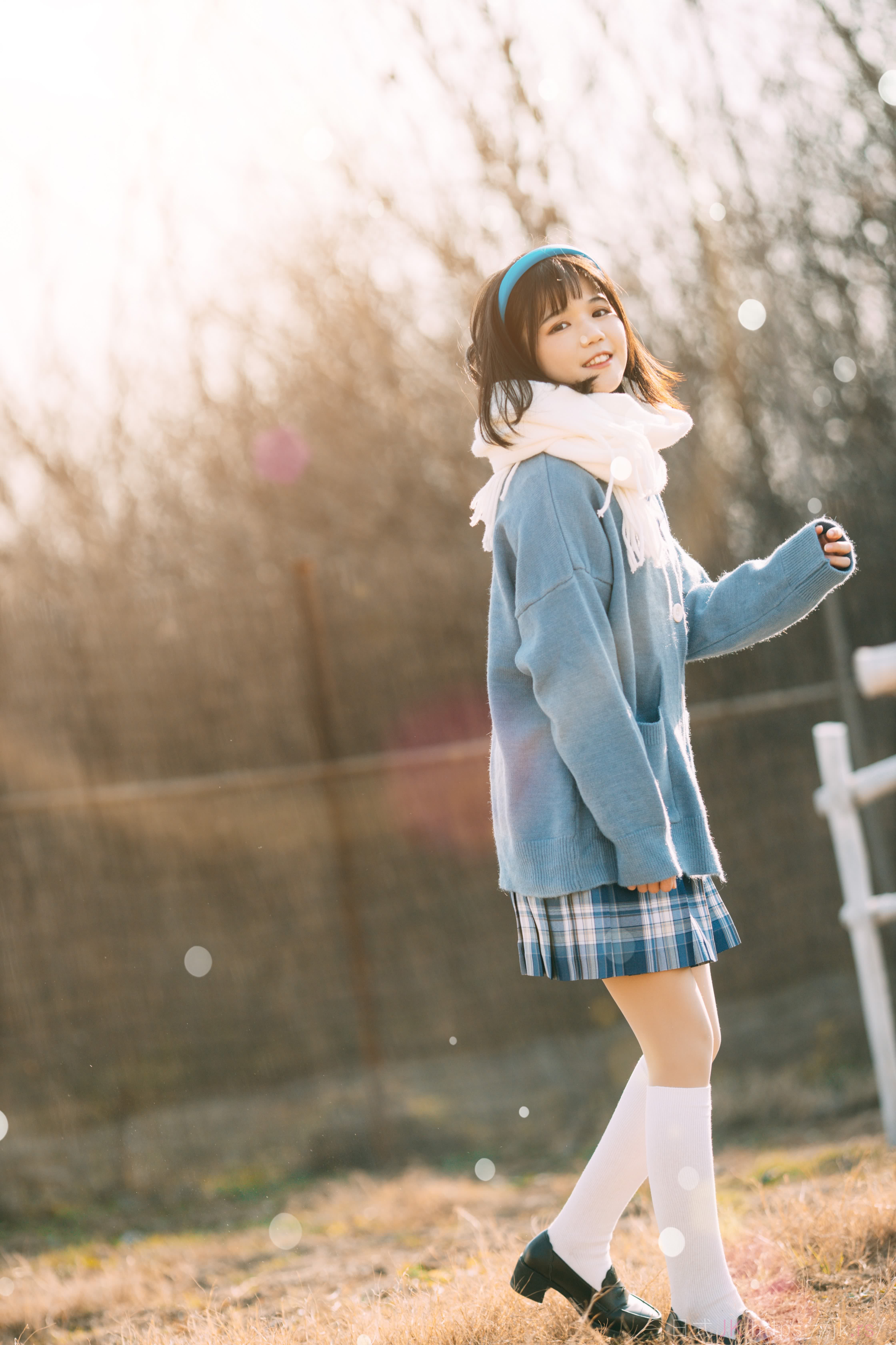 蓝色格子衫的少女