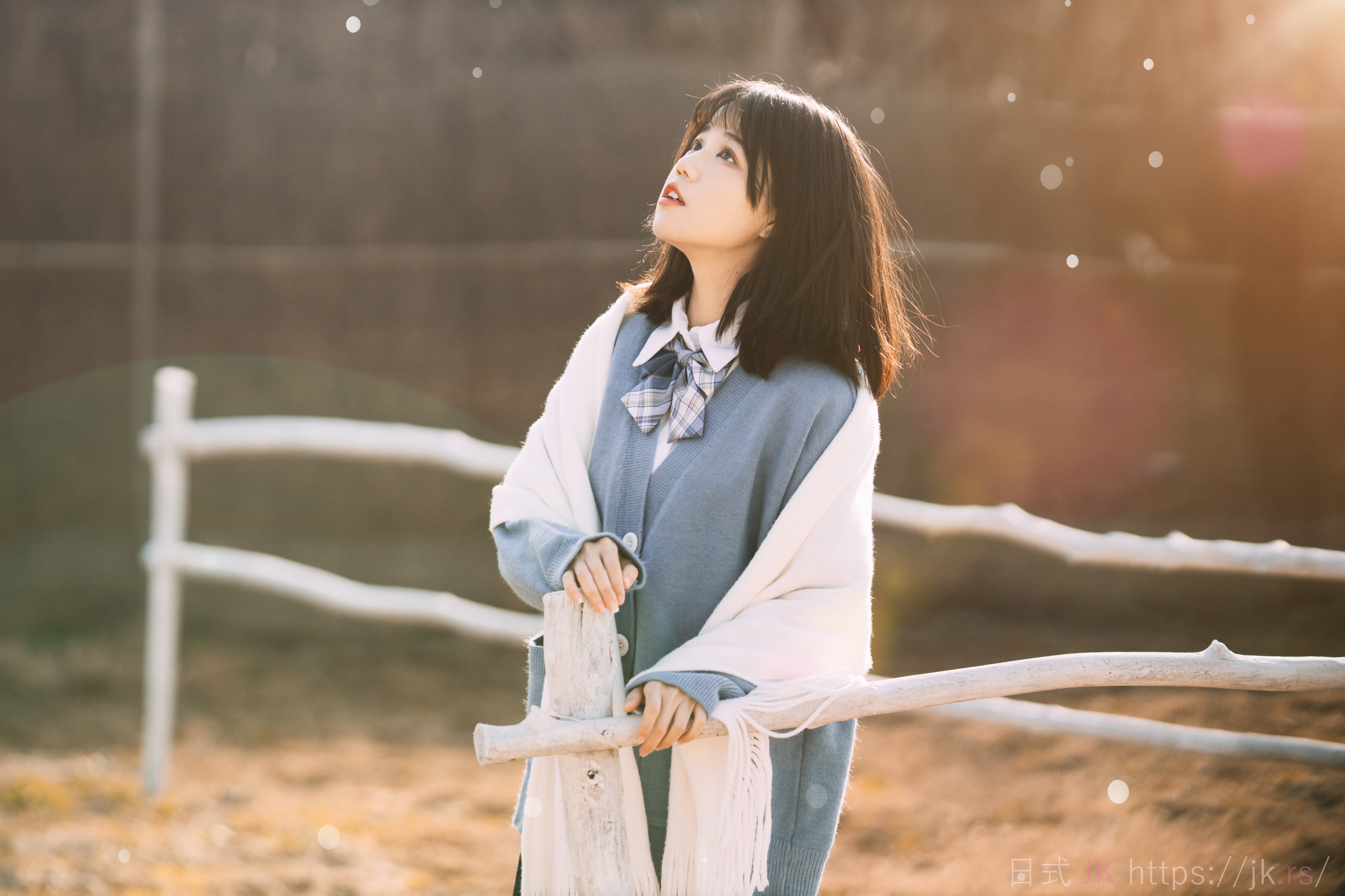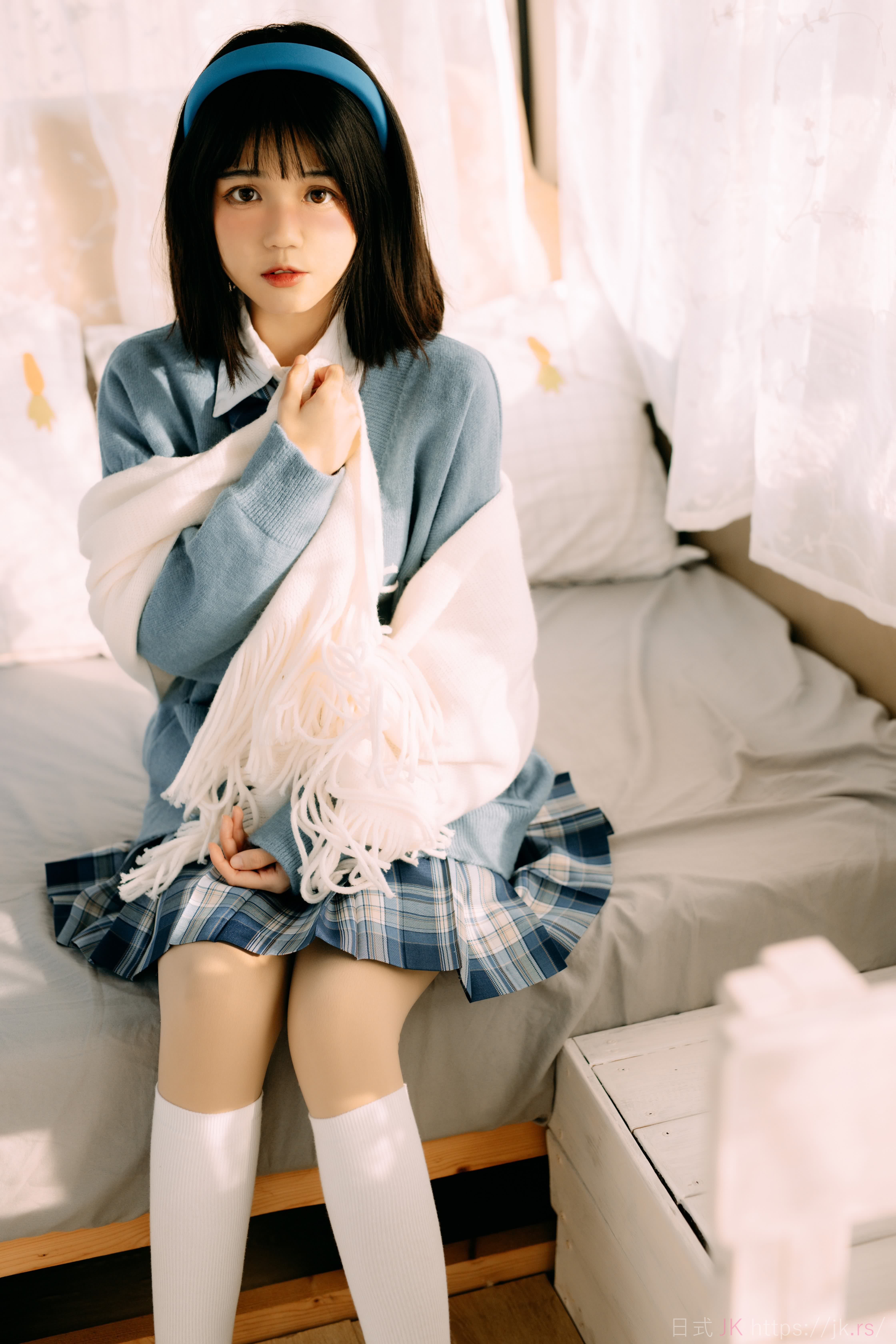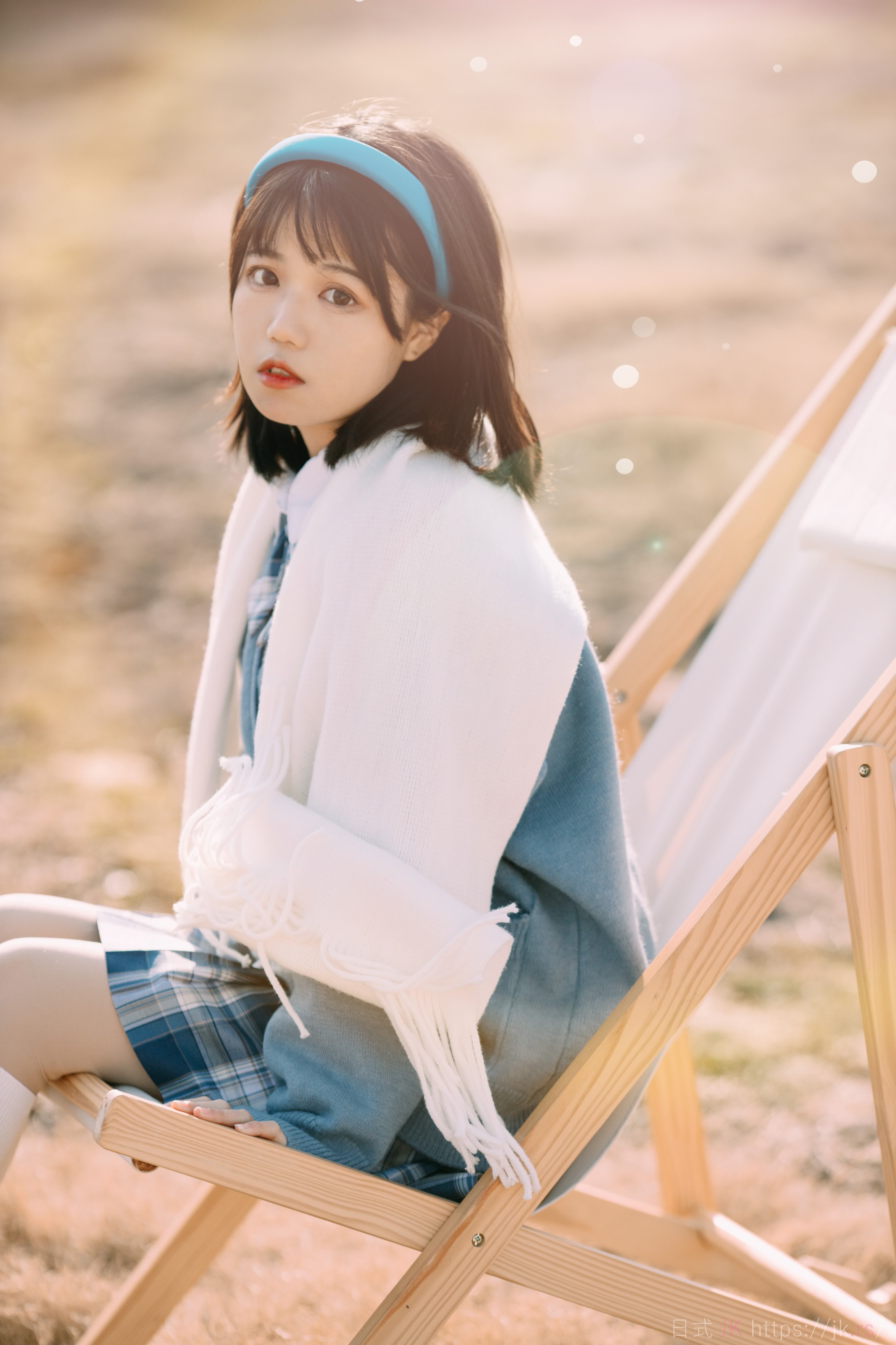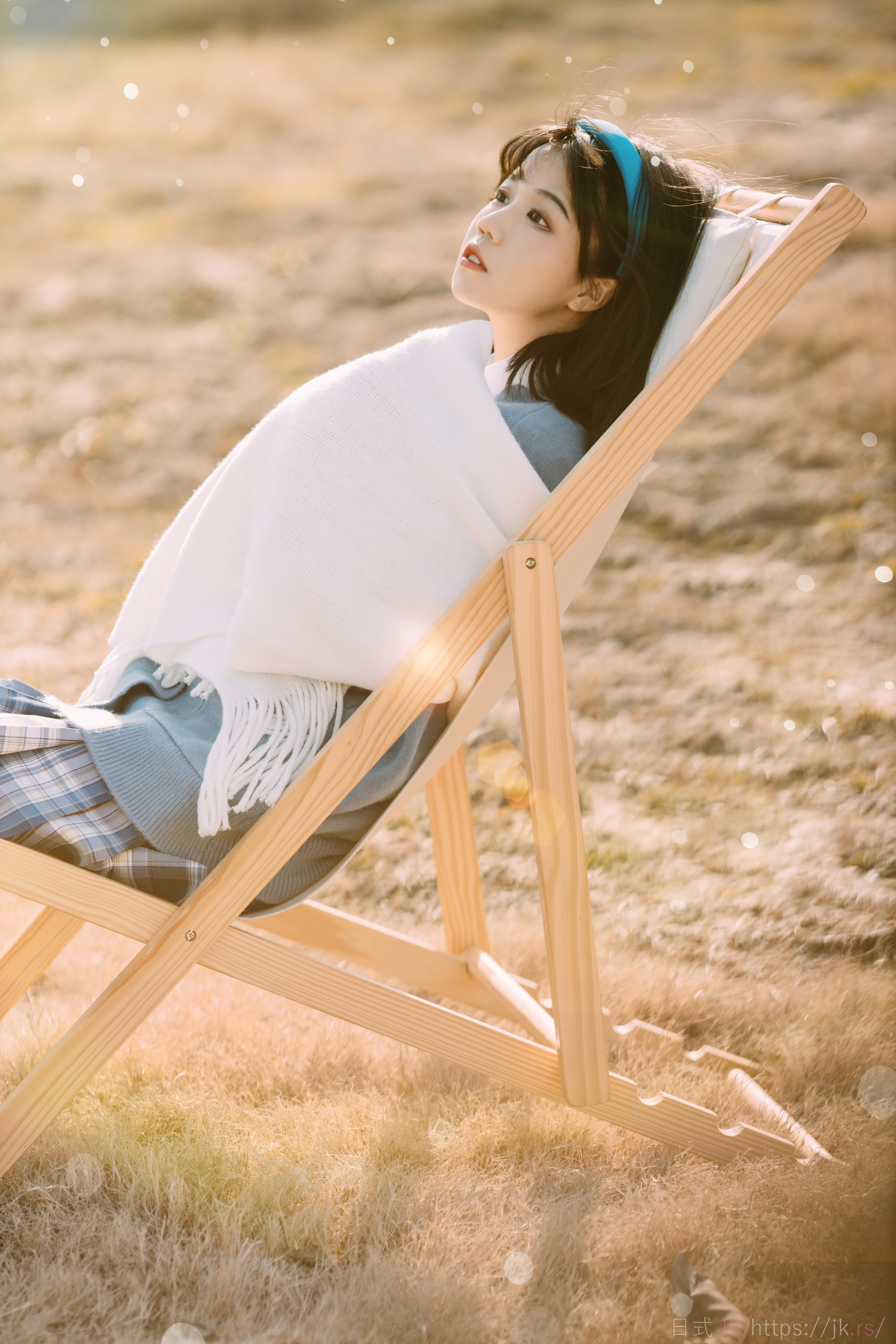蓝色格子衫的少女
