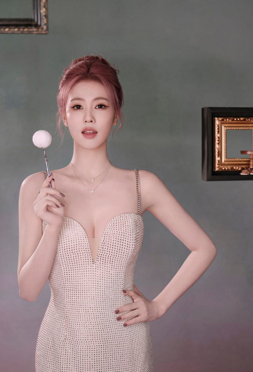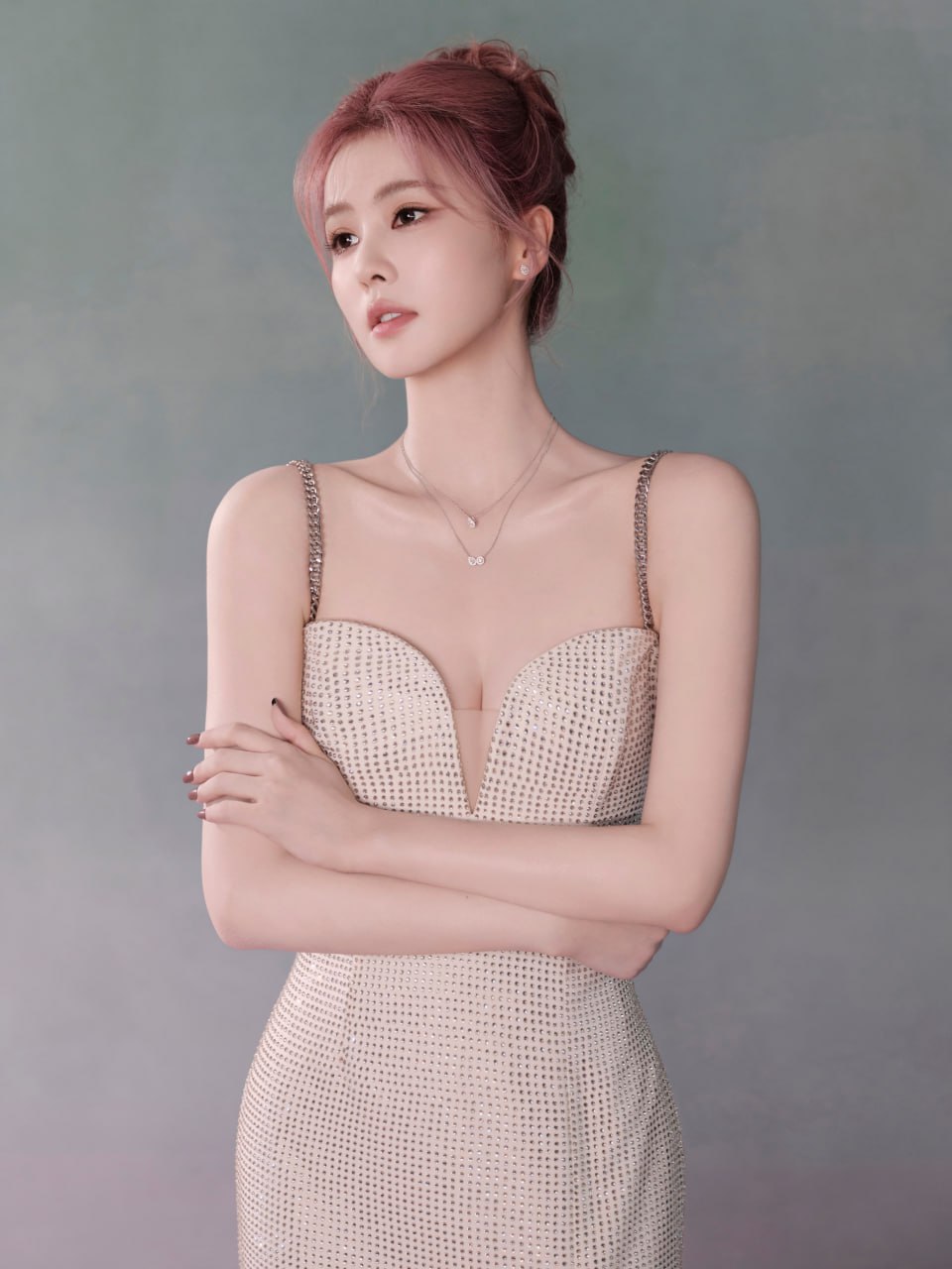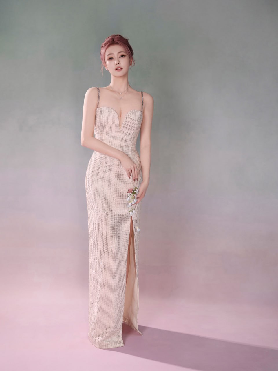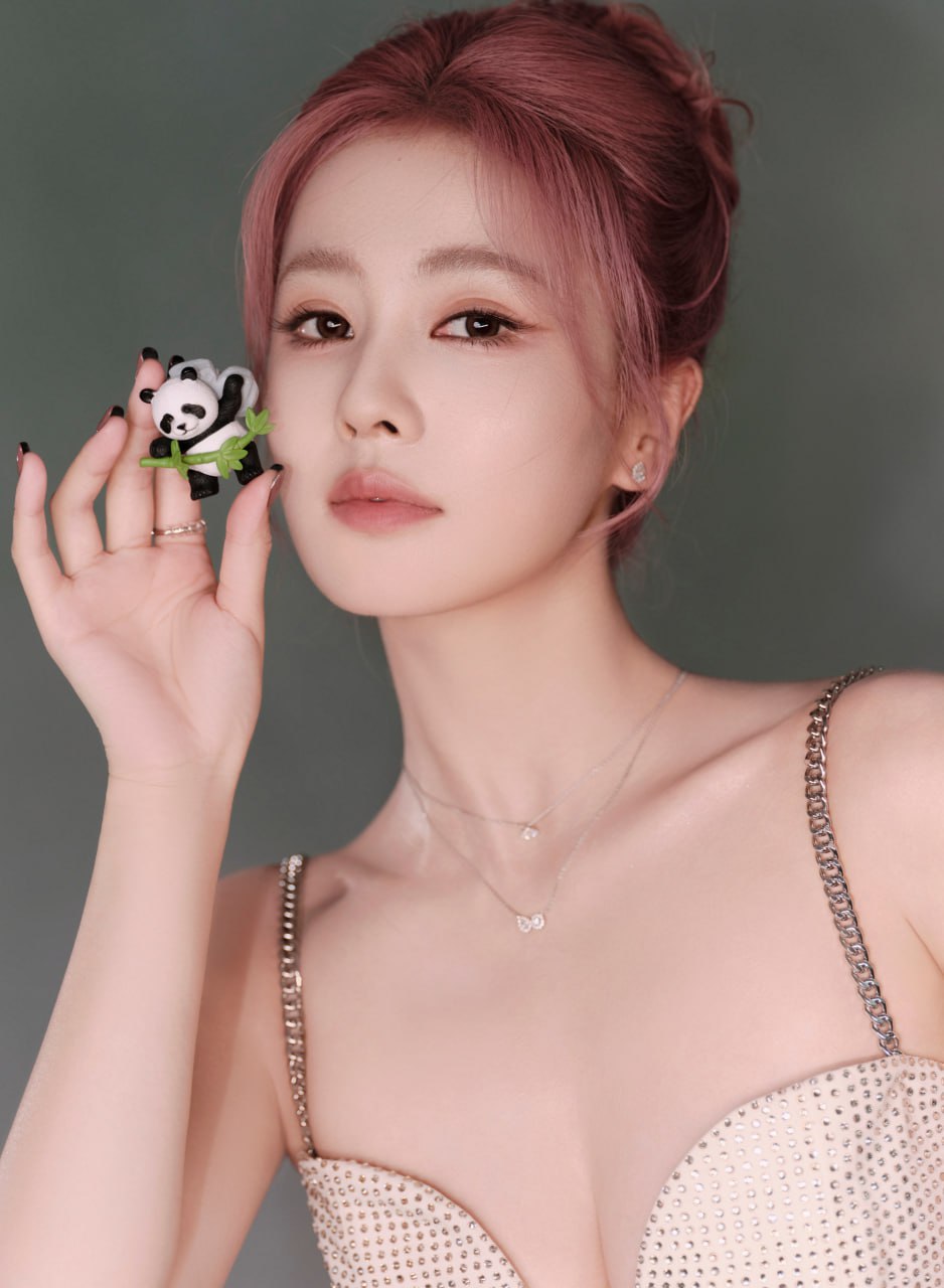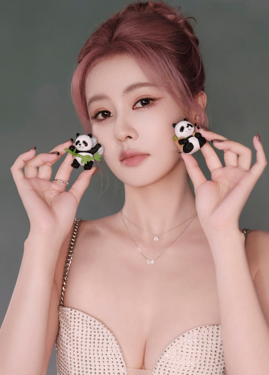 白鹿 成都活动定妆照,一袭钻饰深V长裙,搭配粉发尽显温柔优雅气质