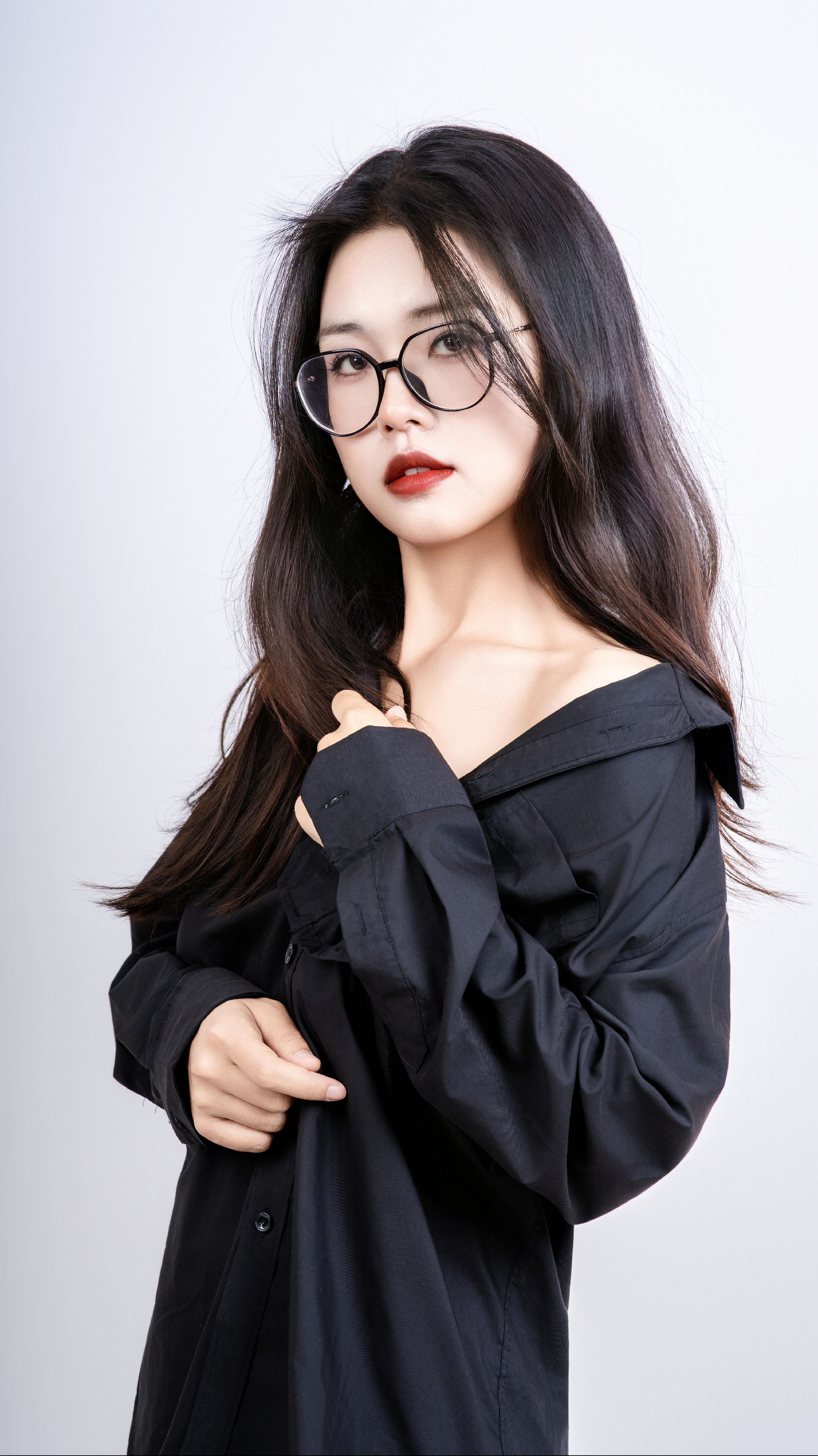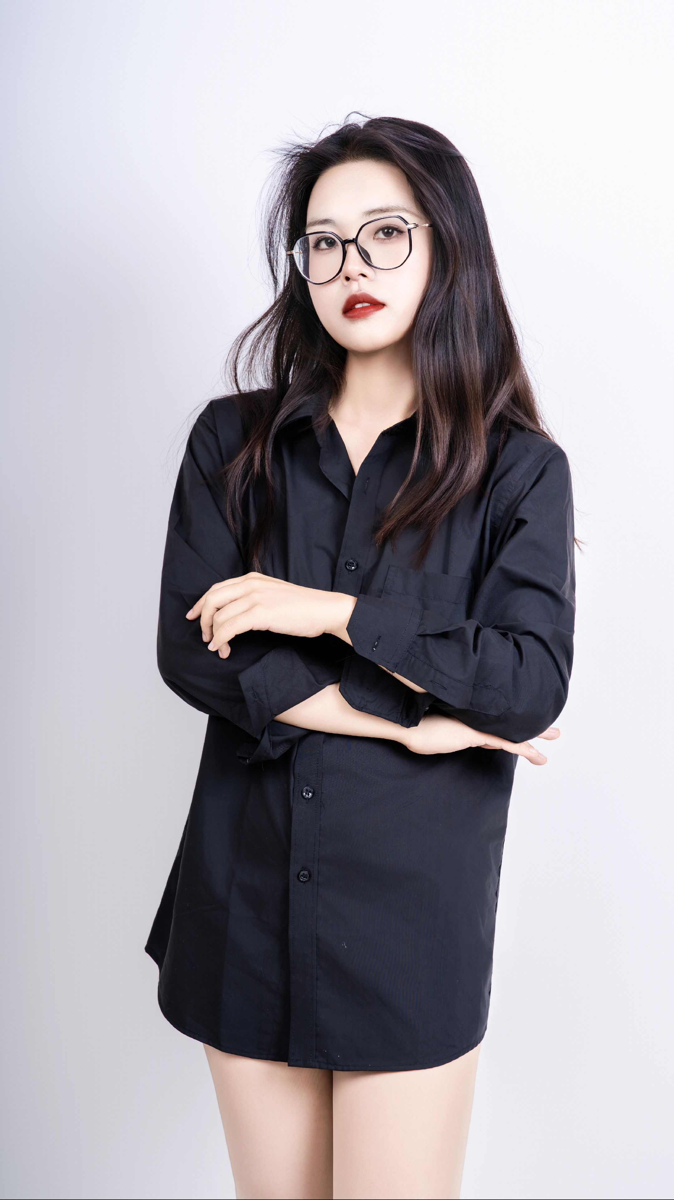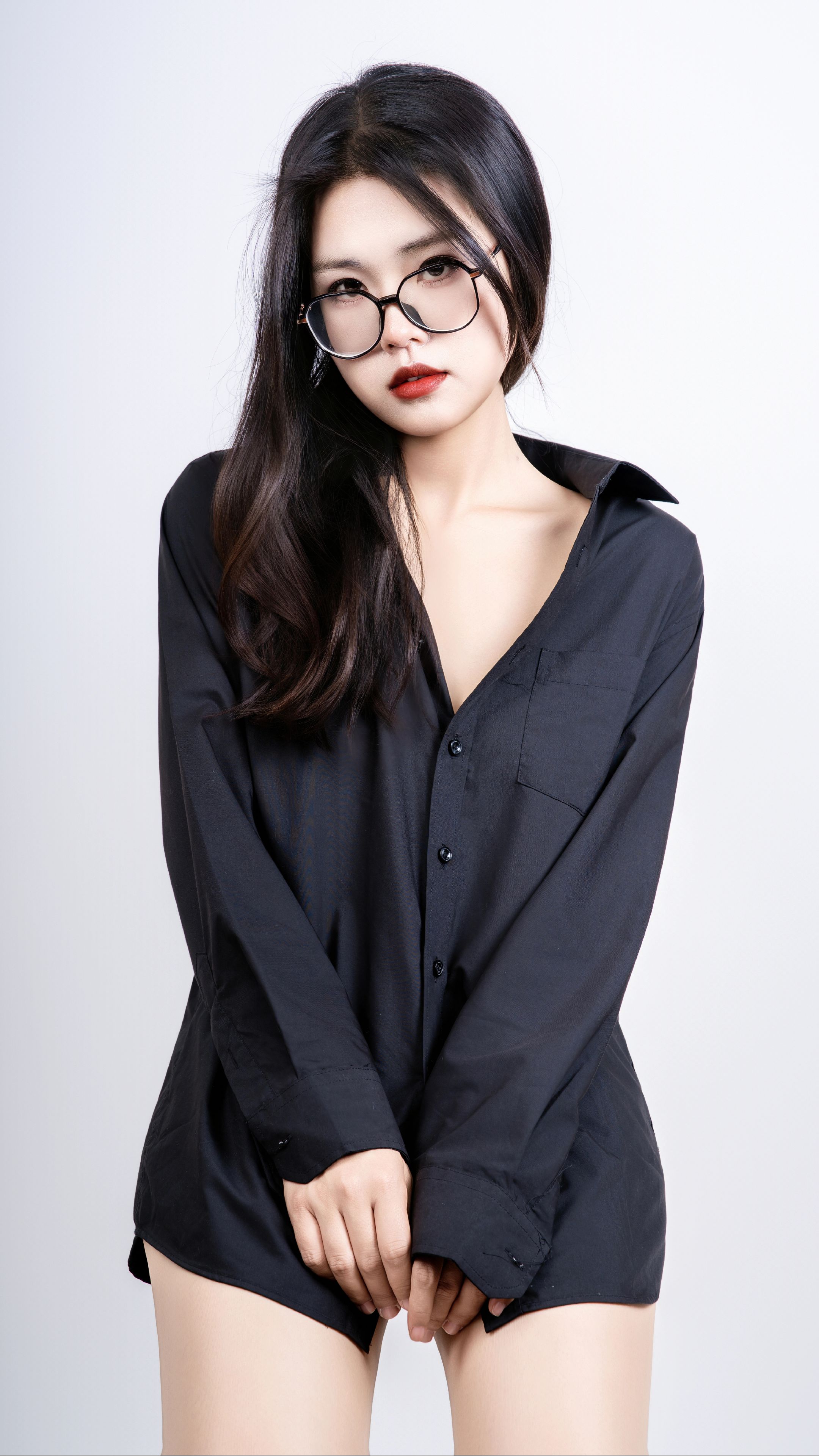 【时尚】当女生戴上眼镜,穿黑衬衫肉丝运动鞋_